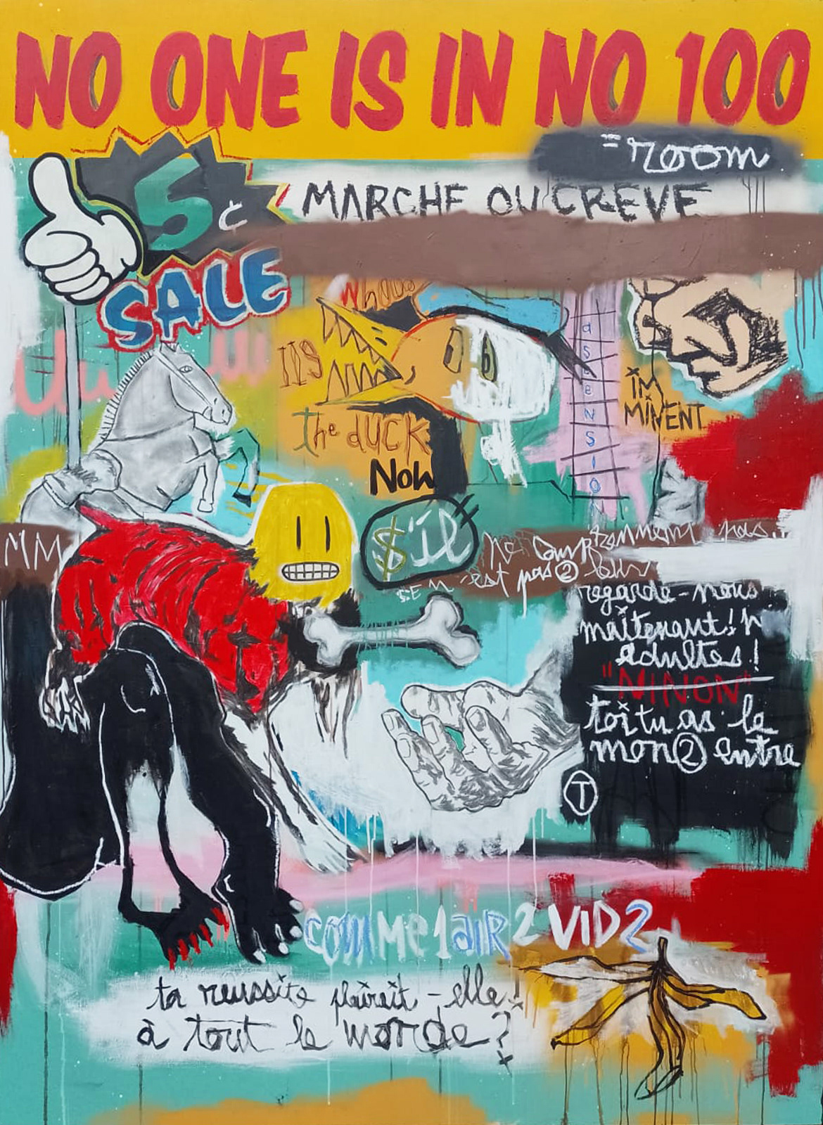 Self-taught, his art is both naive and brutal, surprising with its singular character. His artistic universe, marked by deep originality, amuses, moves, and questions. In line with the neo-expressionist movement, K-litystreet rejects abstraction and minimalist art, which he considers too intellectual and elitist. He favors a return to the figurative, to striking color, and fully exploits the surface of the canvas as well as the pictorial material.